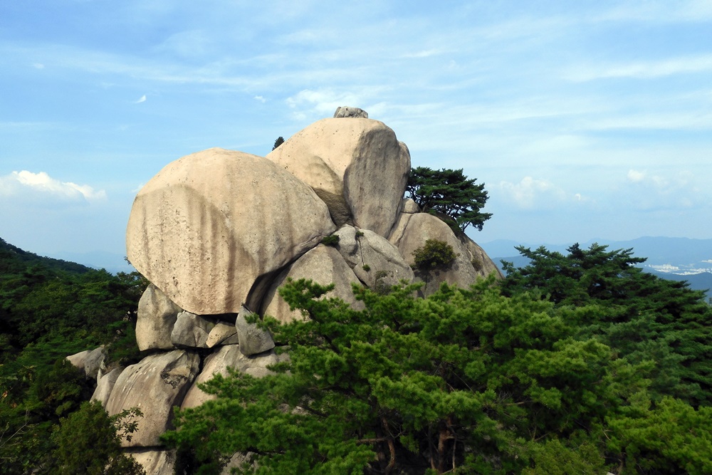 영락대에서 바라 보는 좌측 칠성대와 우측 홈통바위. 홈통바위는 이제 완전 통제 할 예정인듯 하다.