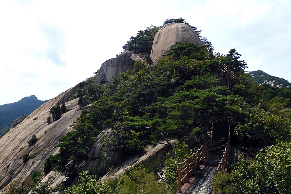 이곳 데크 계단이 새로 생긴 홈통바위 우회길이다.
