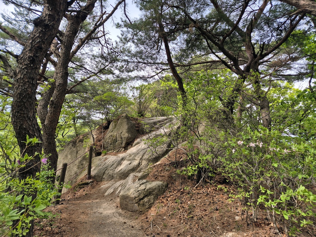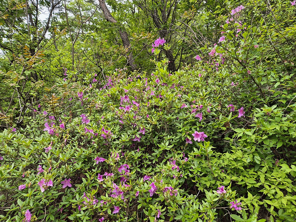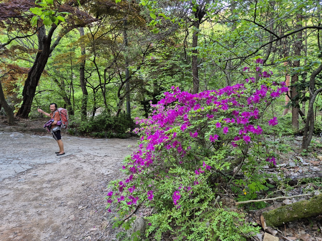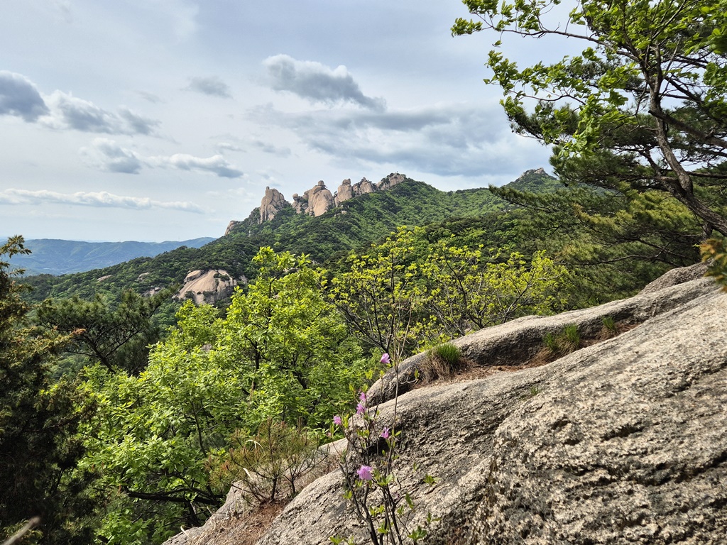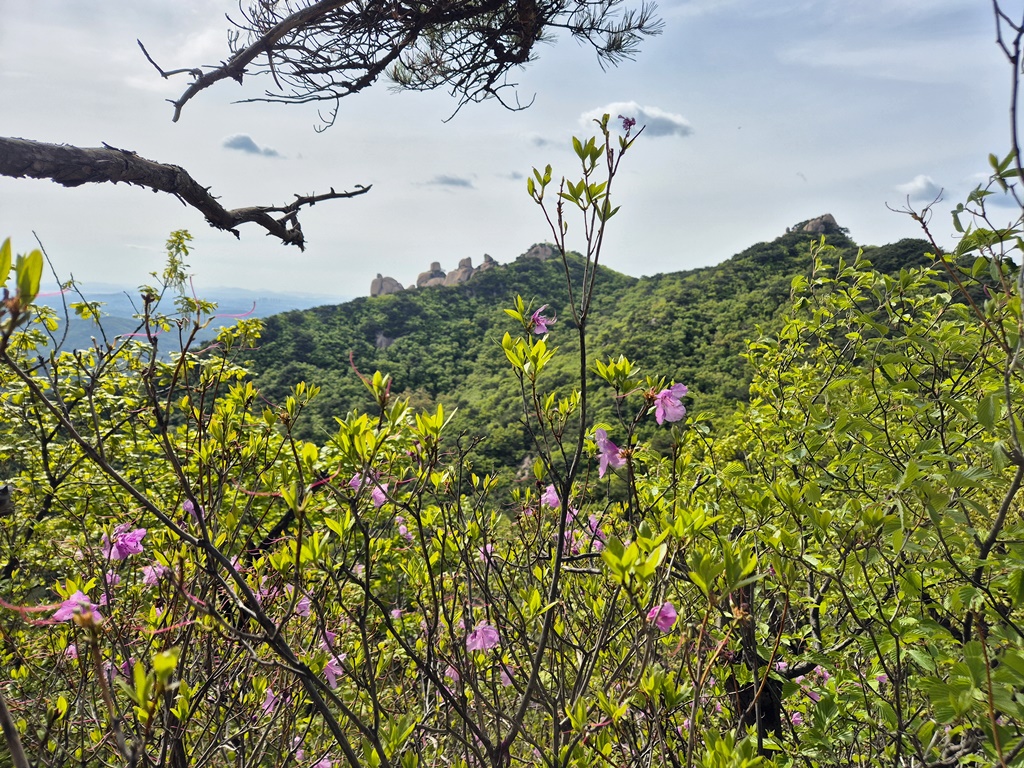 능선에 올라서니 오봉이 보이며 시야가 트여 기분 최고! 윗쪽은 아직 진달래가 많이 남아 있다.
