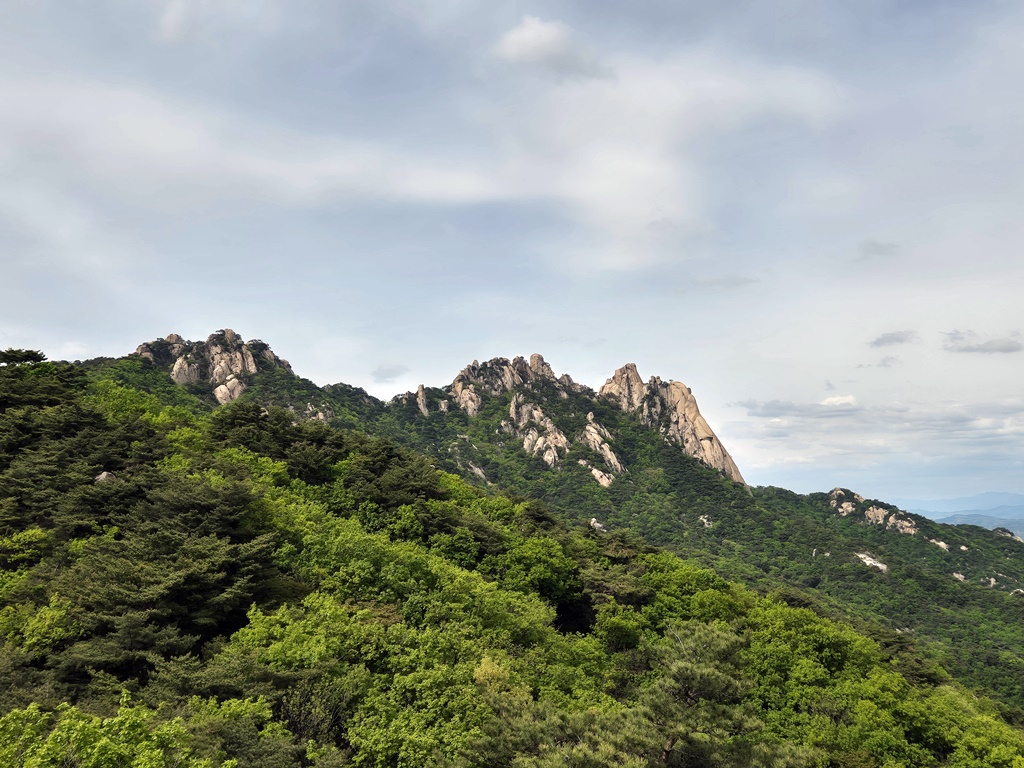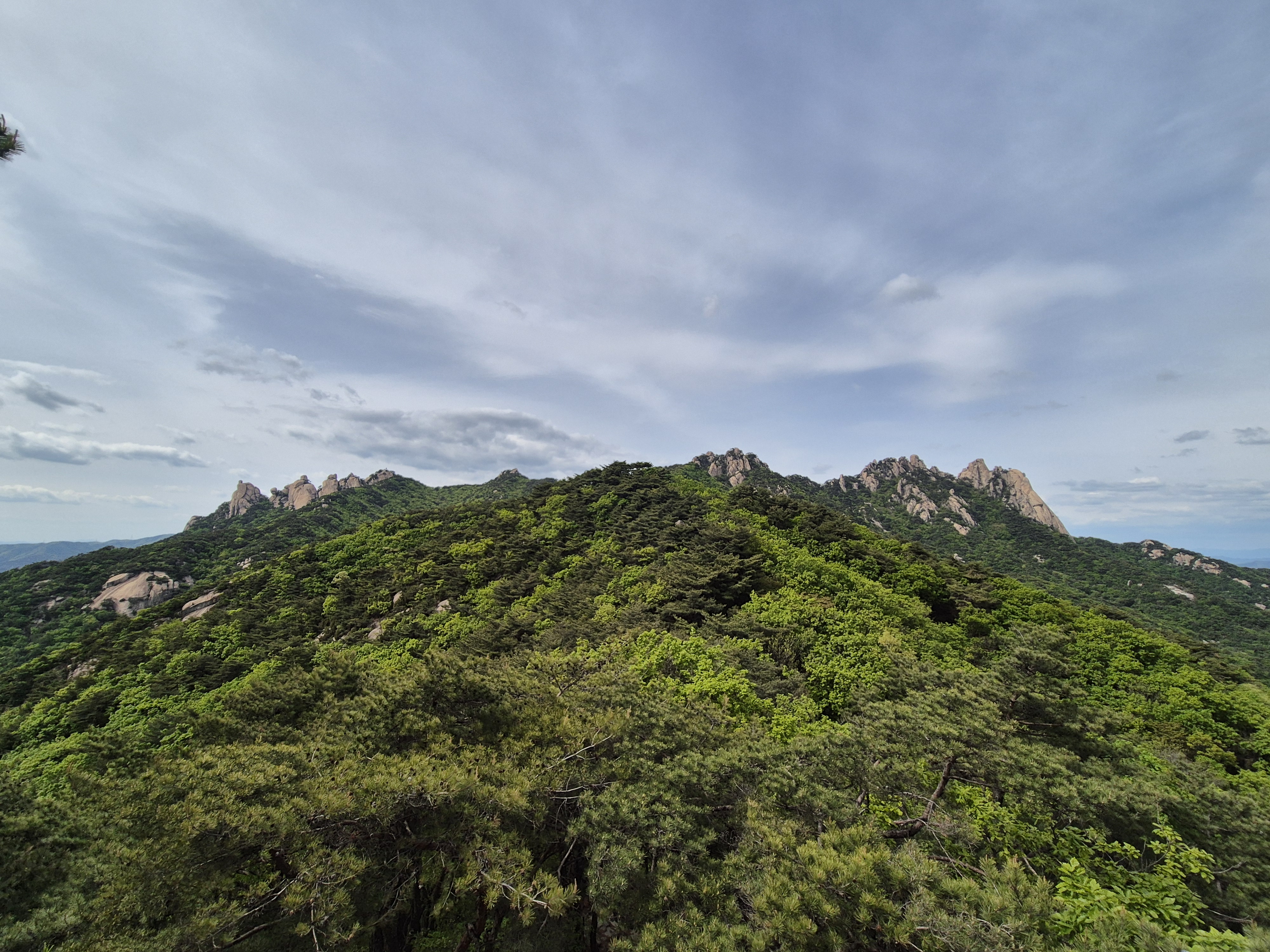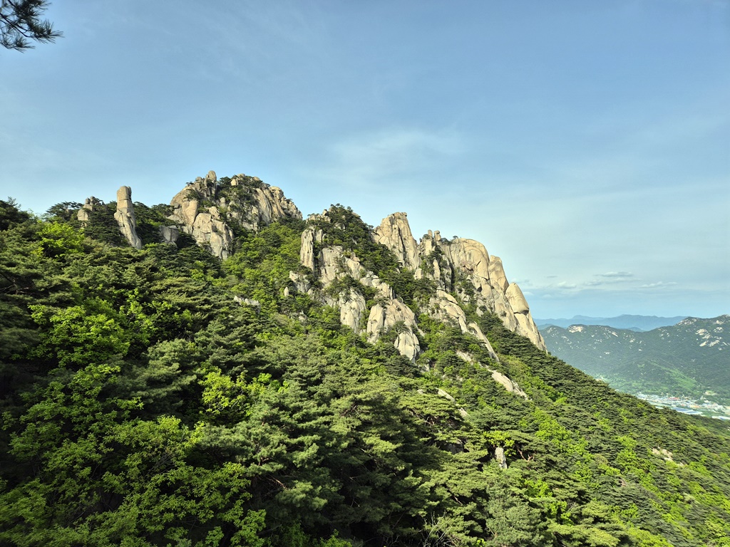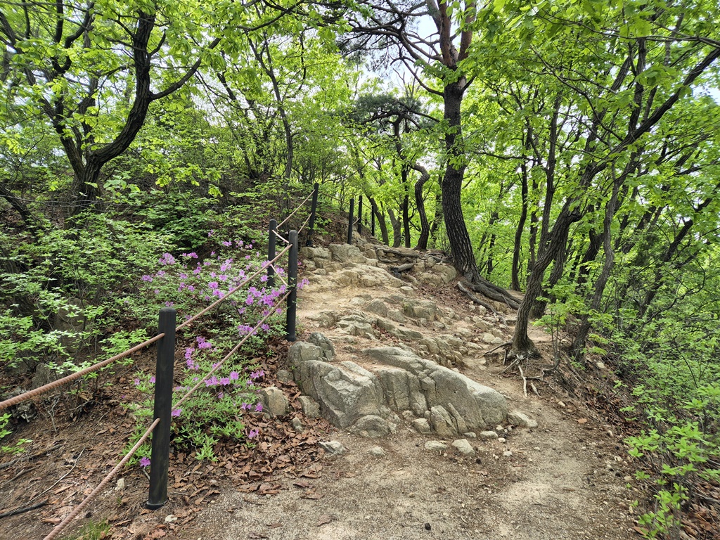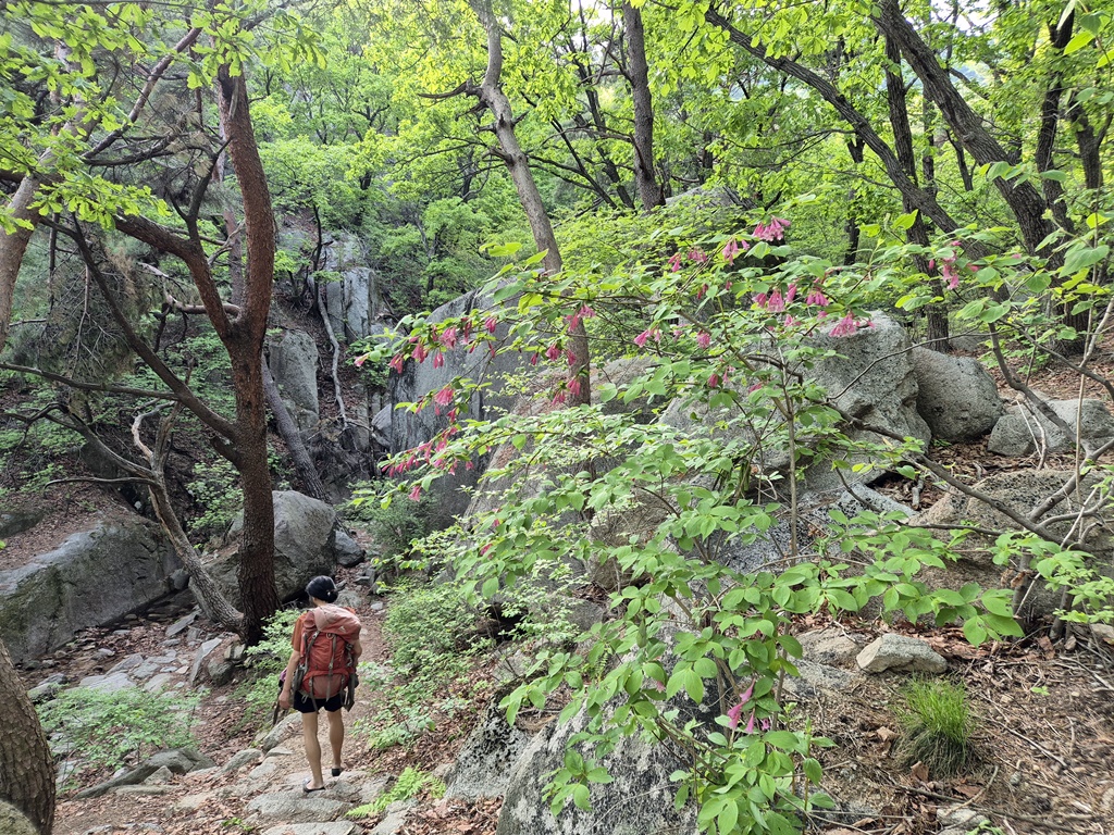 능선에 올라서니 오봉이 보이며 시야가 트여 기분 최고! 윗쪽은 아직 진달래가 많이 남아 있다.