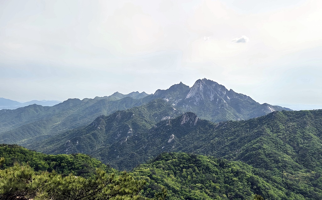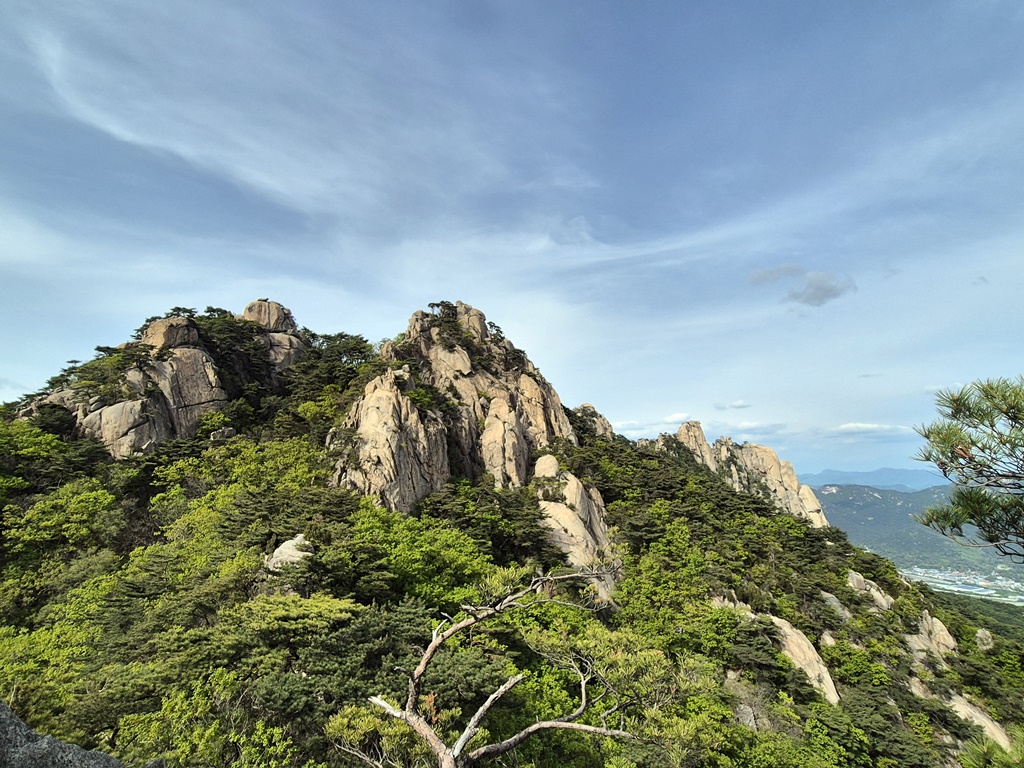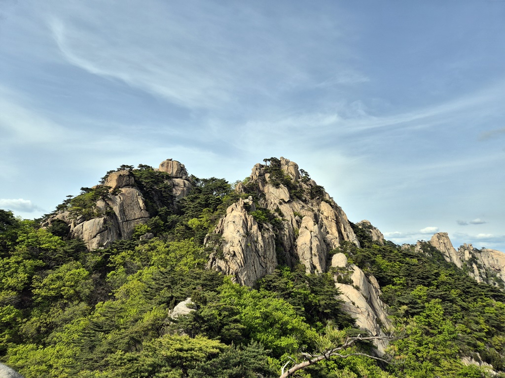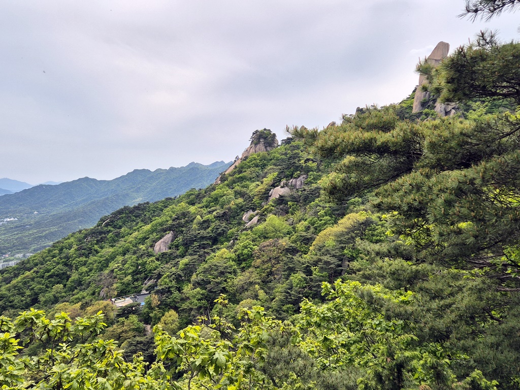 선, 만, 자운봉과 주봉, 물개바위가 보인다. 선인봉을 자세히 보니 소나무가 안보인다.