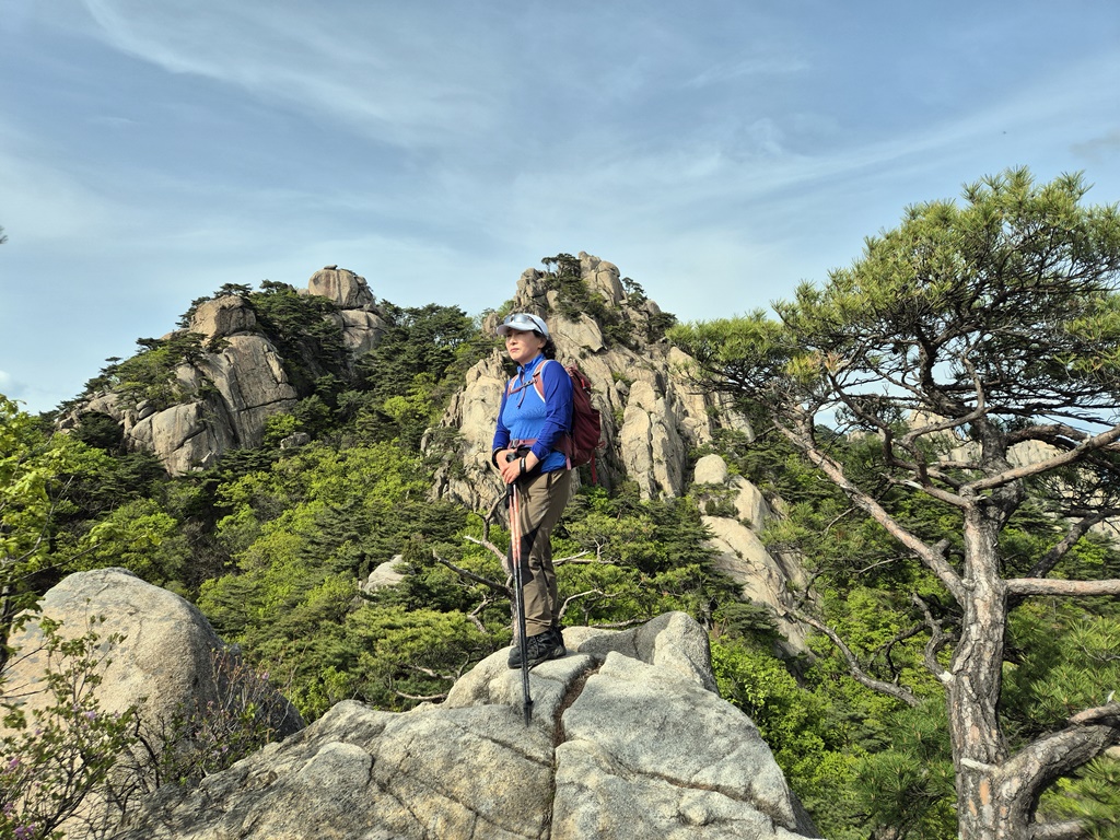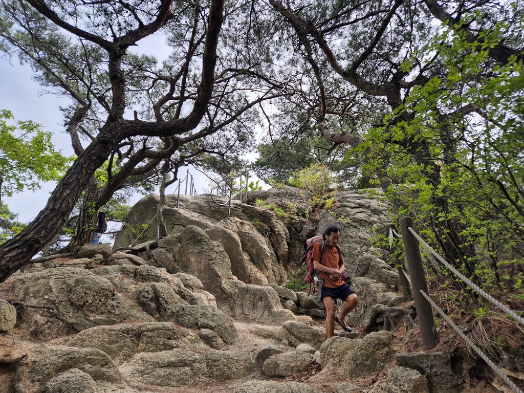 바위구간을 지나며 산님 소리를 하는데 목소리가 우렁차고 구성지다. 한가닥 하던 솜씨다