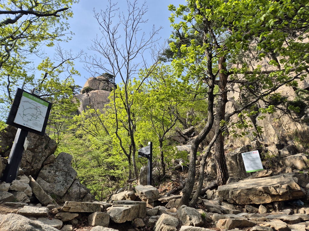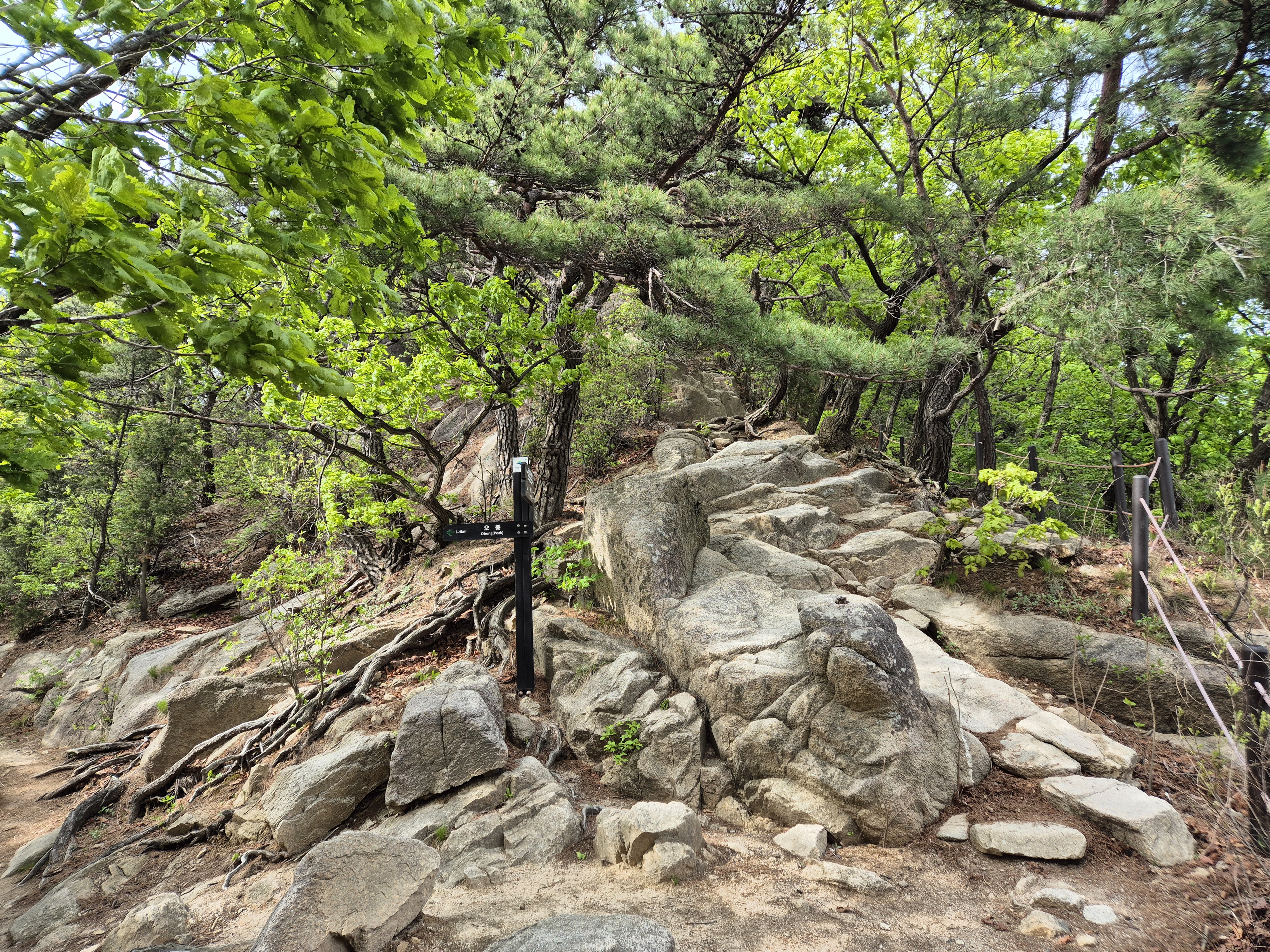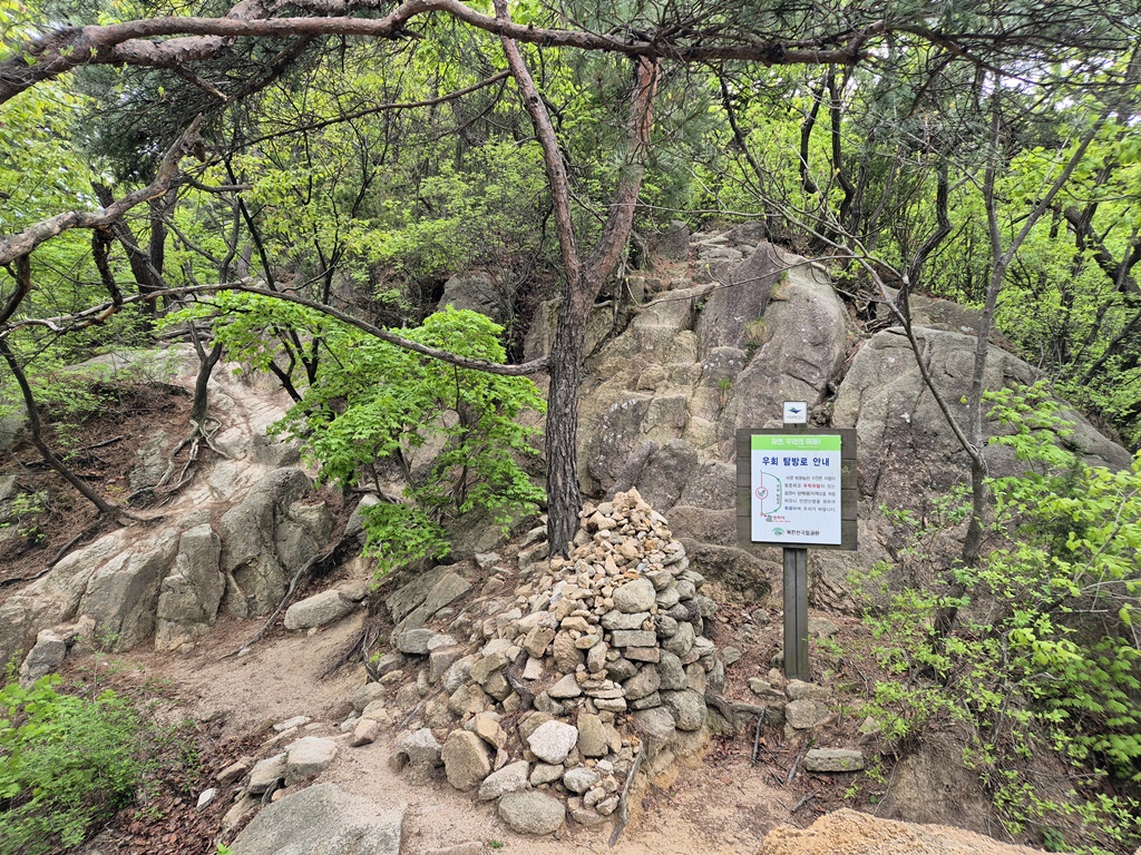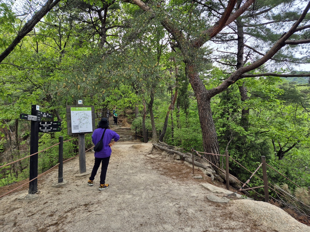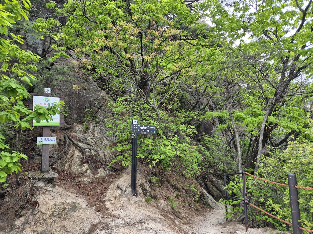 바위길과 계곡길 갈림길인데 나는 바위길 선택했다. 그리 위험하지 않다.