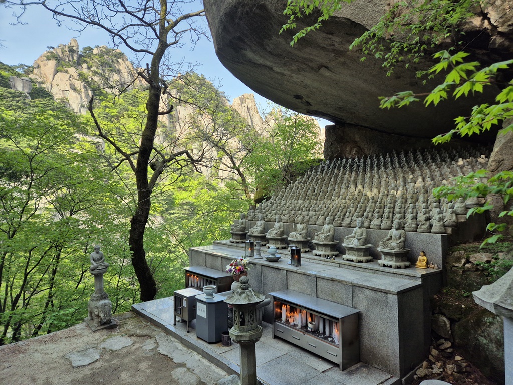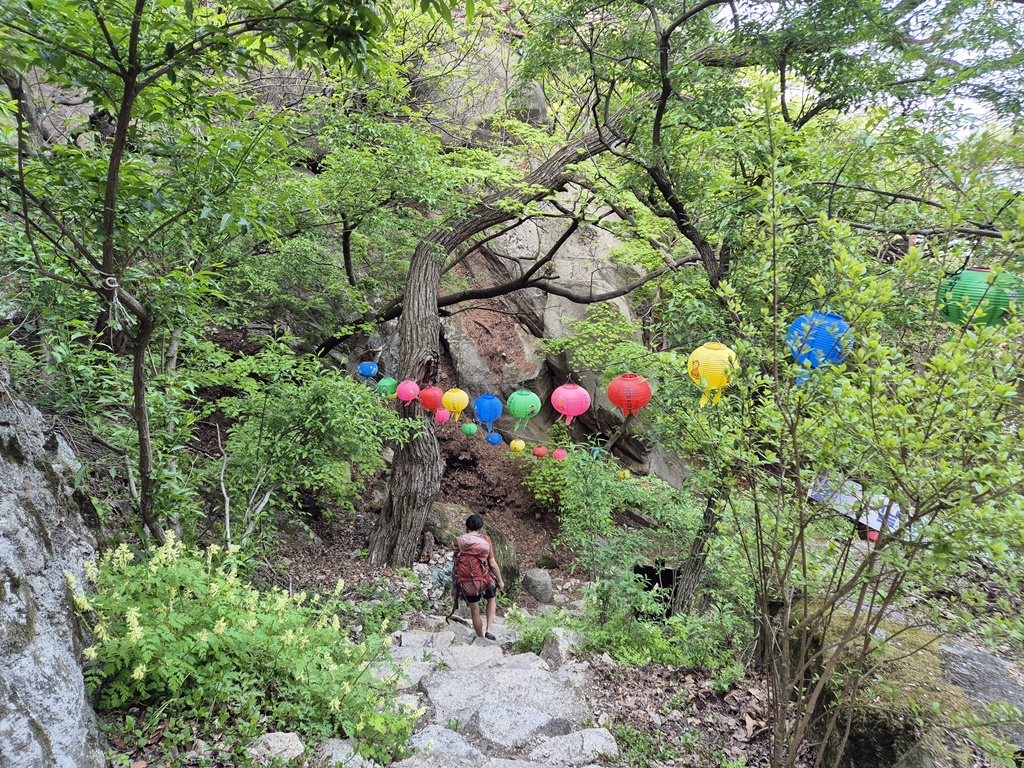 앞에 부부팀이 올라가시는데 아주머니가 등로옆 작은 불상에 얹혀진 동전을 모조리 걷어 간다. 왜?