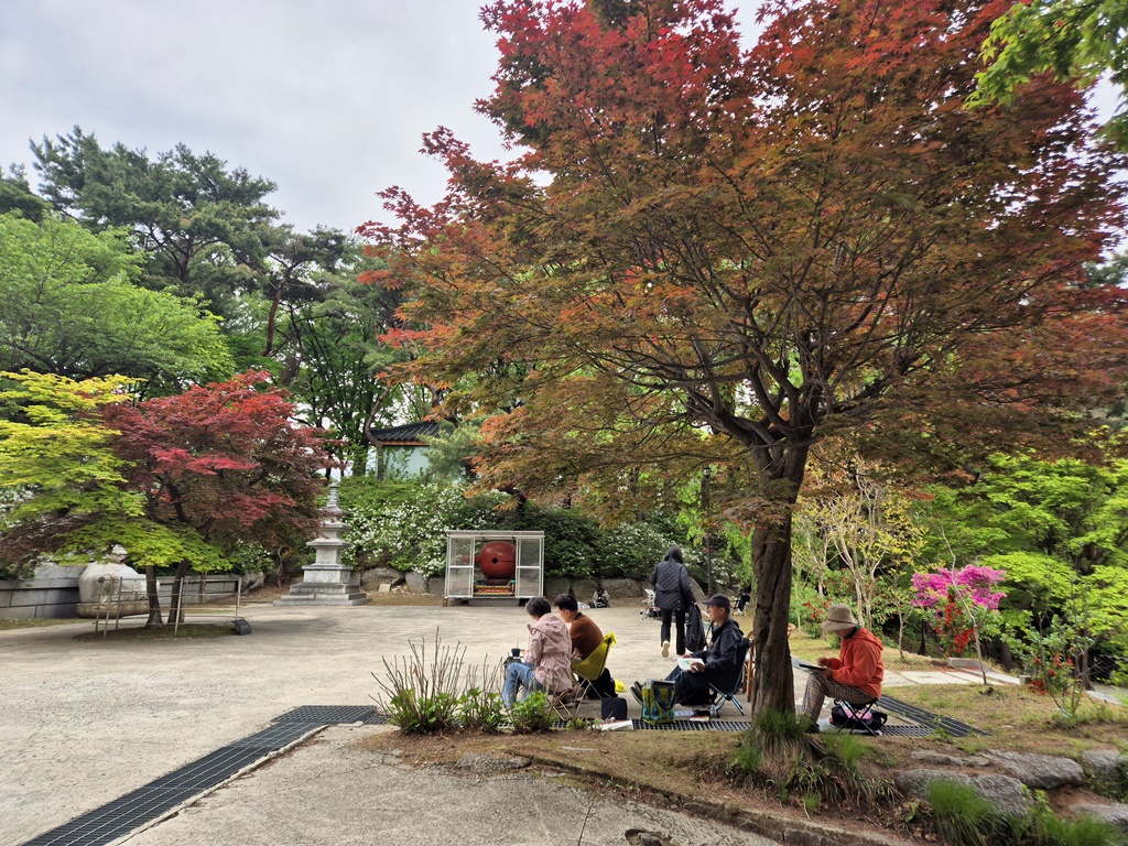 오늘 불자 사생대회가 있는지 여러명이 그림을 그리고 있다. 아름다운 중년의 모습이다.