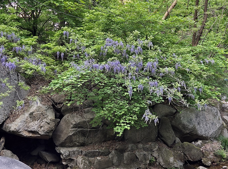 등나무인지 오동나무인지 구분을 못하겠는데 보라색꽃이 주렁주렁 매달렸다.