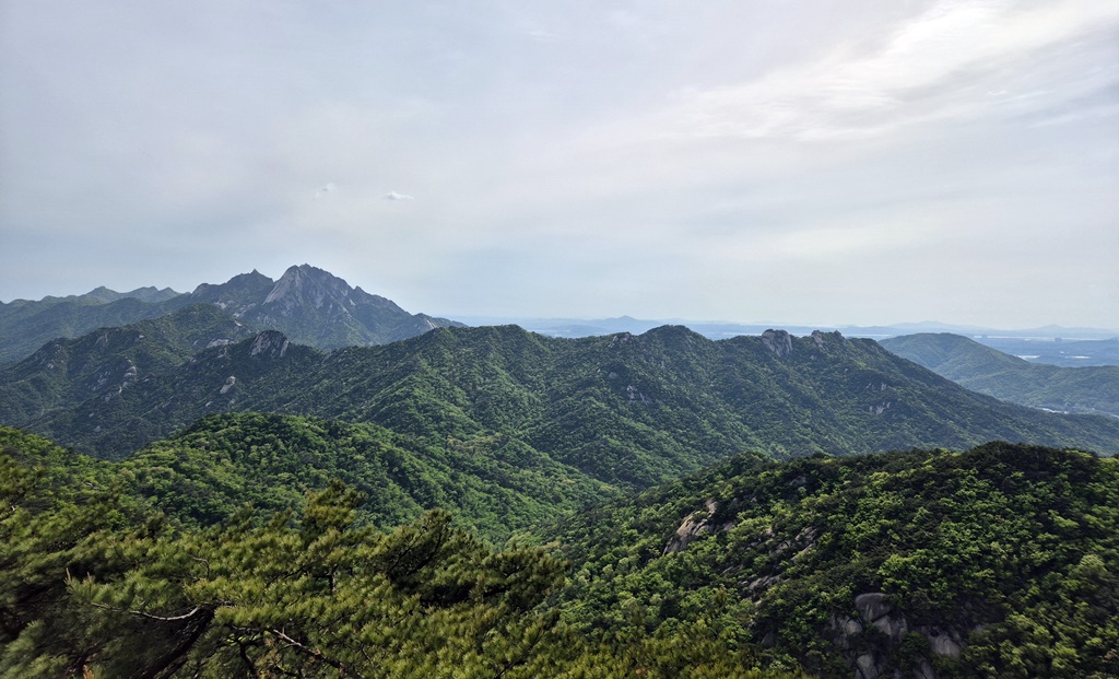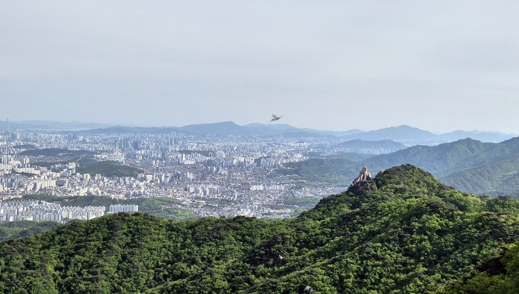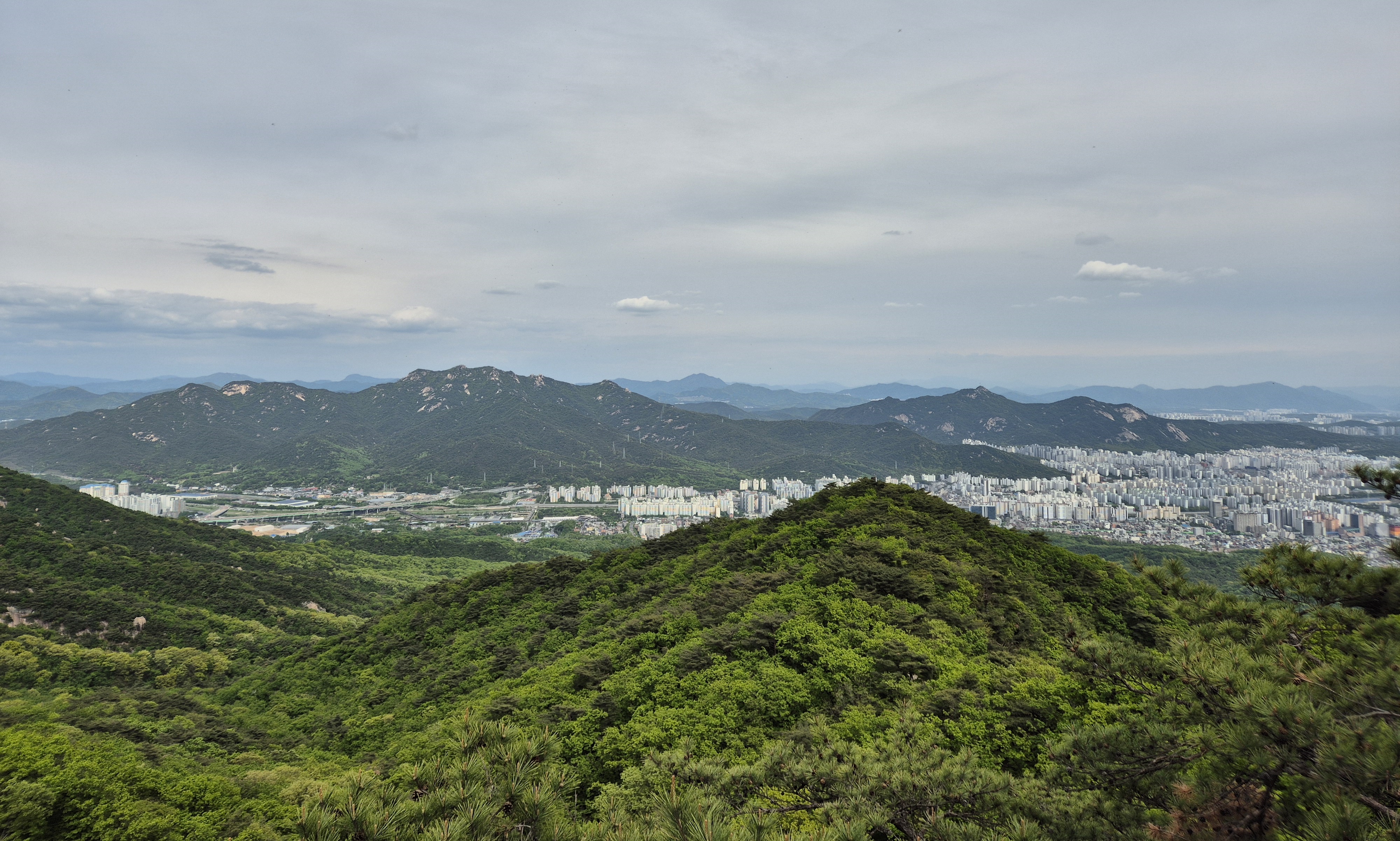 상장능선. 멀리 김포지구 한강까지 보인다.