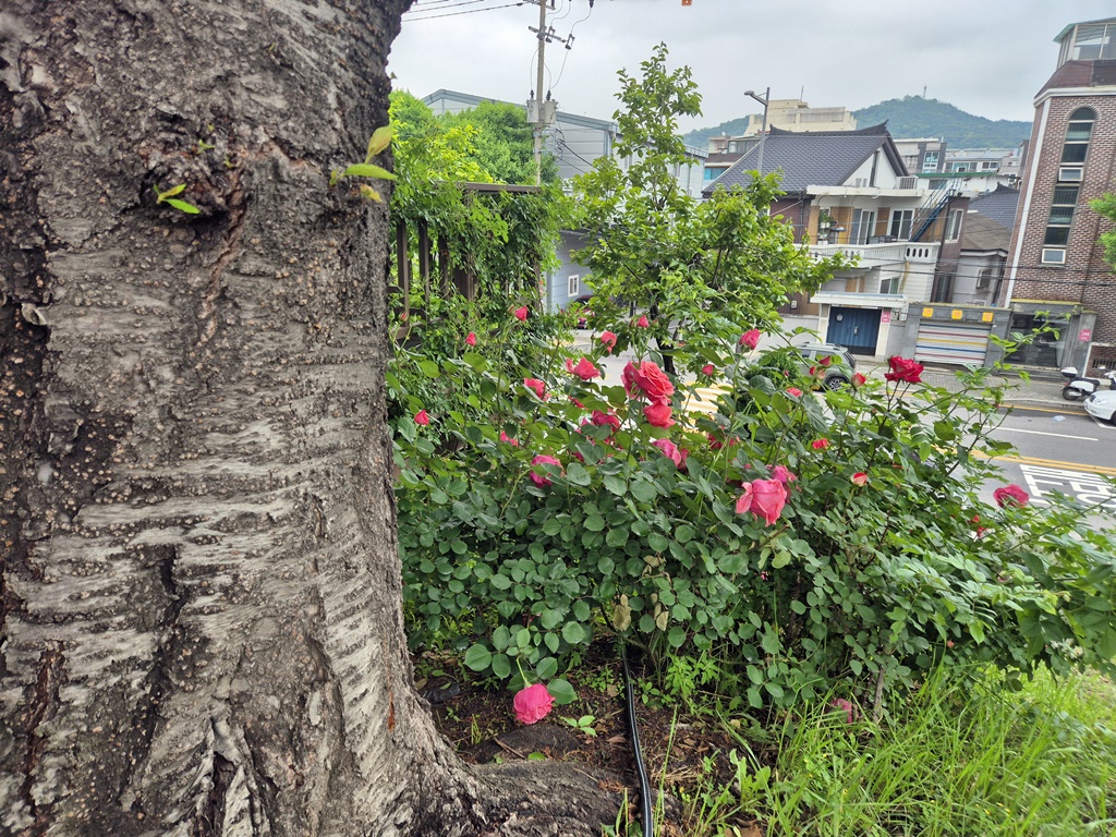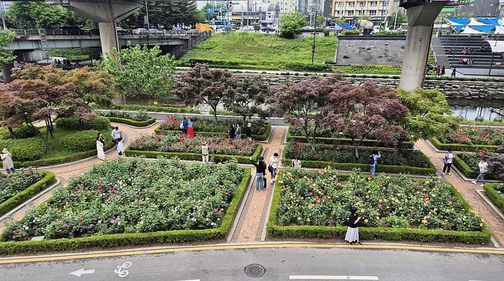 태릉역 아래 천변도 깔끔하게 장미 꽃단지를 꾸며 놓았고 건너편에서는 찬송가 버스킹이 한참이다.