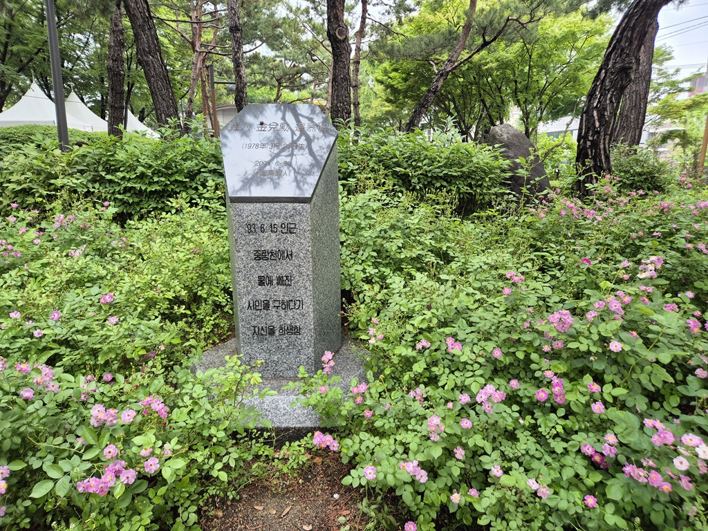 중랑천에서 물에 빠진 시민을 구하다 돌아가신 의사자를 기념하는 곳이다.