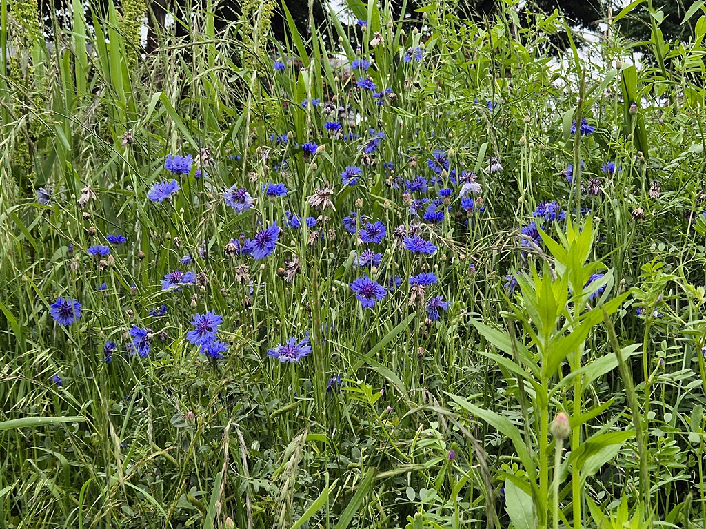 자전거 전용도로 옆 숲에 수레국화가 무리지어 피어 있고..