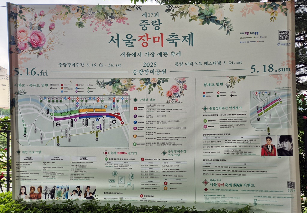 장미축제장은 중랑구에 위치한다. 나는 오늘 성북구에서 동대문구를 거쳐 중랑구로 간다. 완전 변두리 인생이네 ㅋ