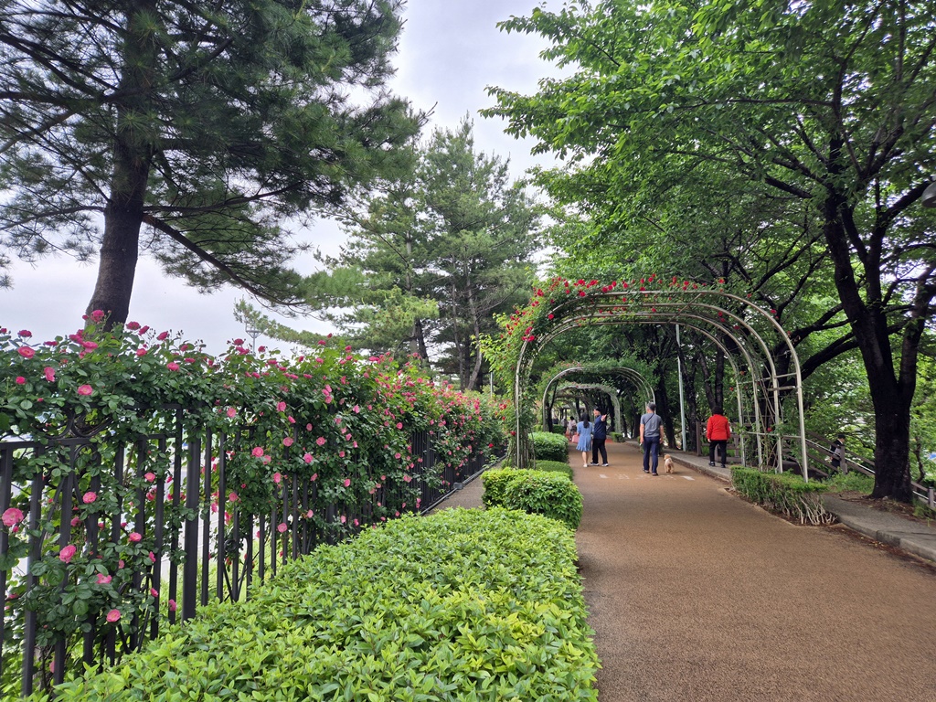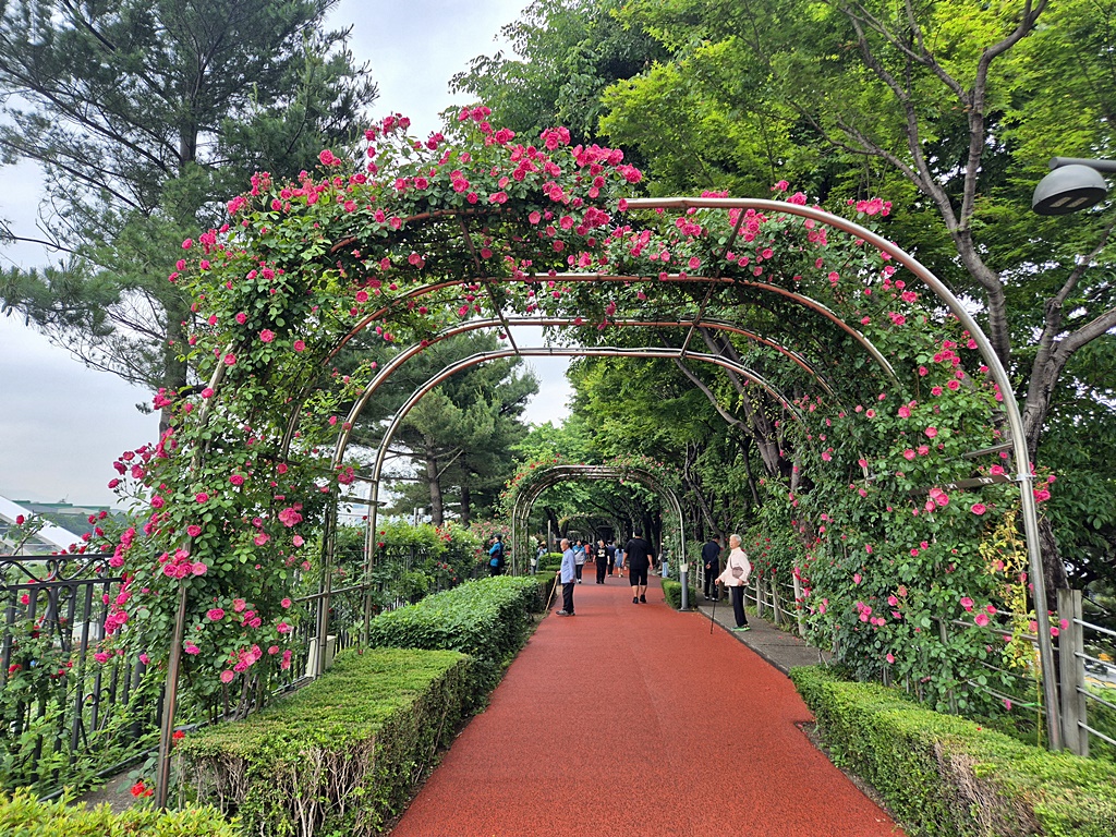 이 장미터널은 성북구 석관동쪽 장미터널이다. 이화교까지 곧장 걸어가면 동대문구 쉼터에는 생수병을 담아 놓은 냉장고가 비치되어 있어 누구나 물을 꺼내 먹을 수 있다.