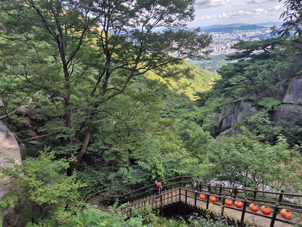 오늘 계획은 신선대에서 내려가려 했는데 아찌가 힘들다고 이곳에서 계단으로 하산하자고 한다.