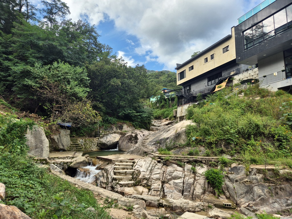 이 계곡이 모두 음식점에서 차지해서 일반 등산객은 거의 내려갈 수 없었는데 지금은 깨끗해 지니 보기 좋다.