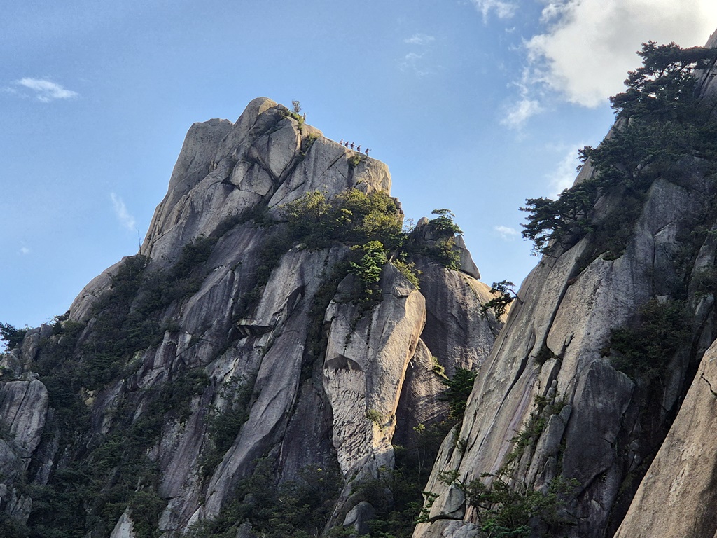 만장봉에 바위꾼의 모습이 보인다. 저길 어떻게 올라 갔을까.. 대단하다.