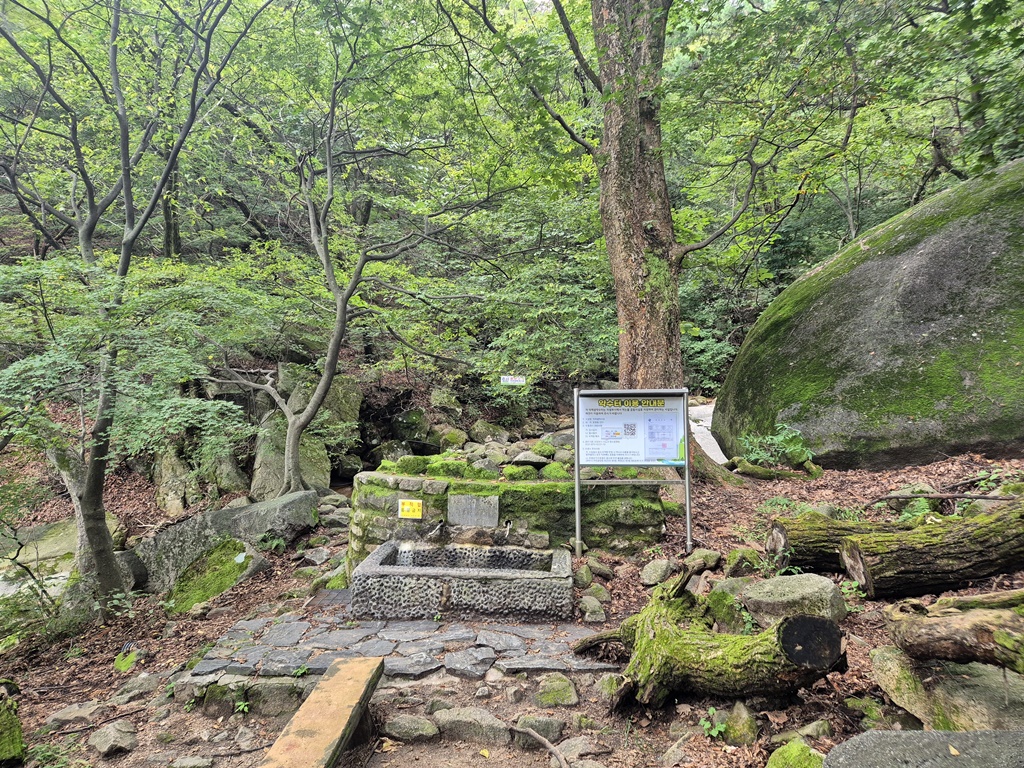 비온 뒤라 시원하게 물이 쏟아져 나온다. 이곳에서도 시원하게 한 잔 마시고 간다.