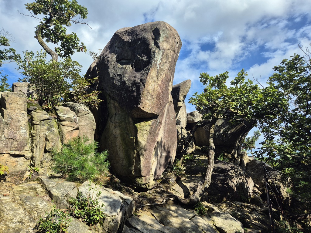 이곳이 다락능선 마지막 바위다. 우측으로 우회해도 되는데 바위에 올라선듯 하다.