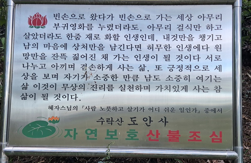코 스 : 수락산역- 수락골- 새광장- 절터샘- 깔딱고개- 안부사거리- 도솔봉- 도안사- 수암사- 수락산휴양림- 당고개역