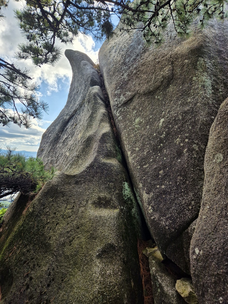 도솔봉 정상 좌측으로 이런 바위가 있는데 올라가려고 일부러 바위를 파 놓은것 같아 보인다. 올라가 보고 싶다 ㅎ