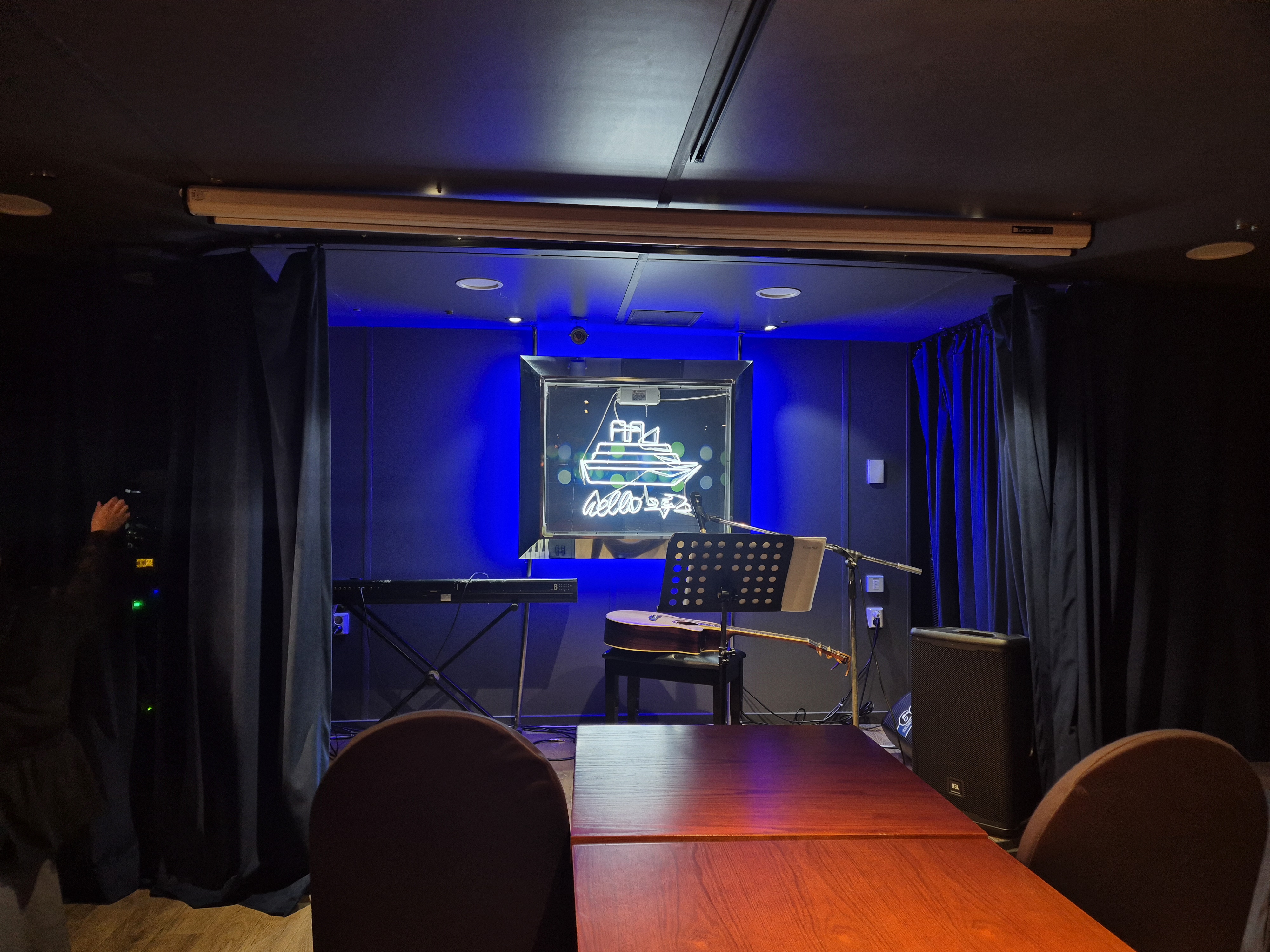 반포대교 달빛무지개 분수쇼가 끝나고 회항하는데 오늘의 가수가 나와서 대여섯 곡을 부른것 같다.