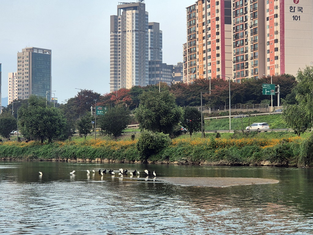 가마우지와 외가리 같은데 함께 떼지어 있는 모습은 처음 본다
