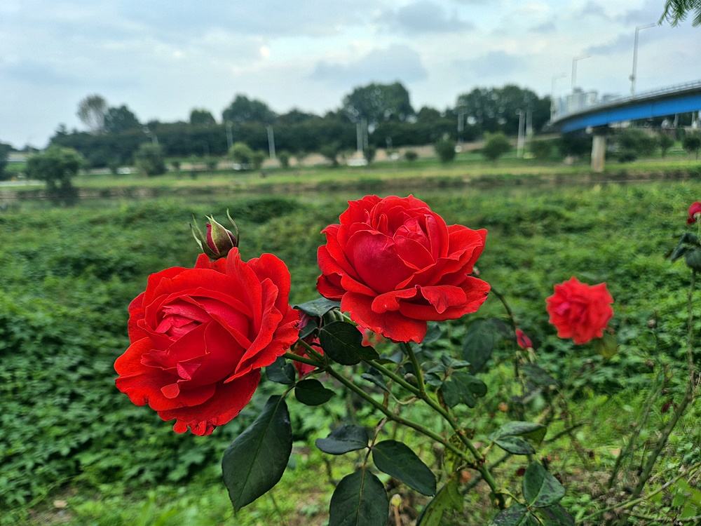 <오랜만데 걷는 중랑천에서 만난 장미 >