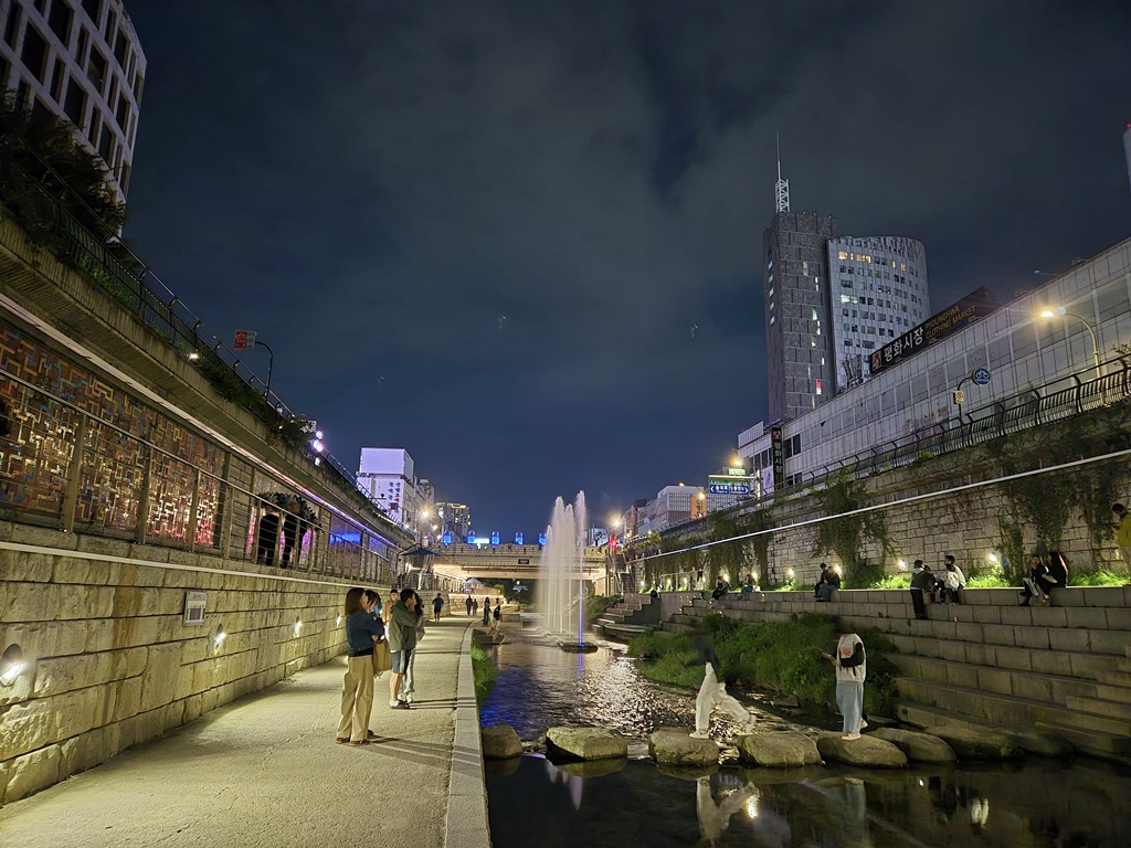생각보다 청계광장 방향을 바라 보니 밤거리가 조용하고 조명도 어둡다.