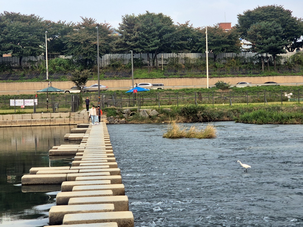 이곳에서 징검다리를 건너 다산로 위를 지나 동묘역으로 간다.