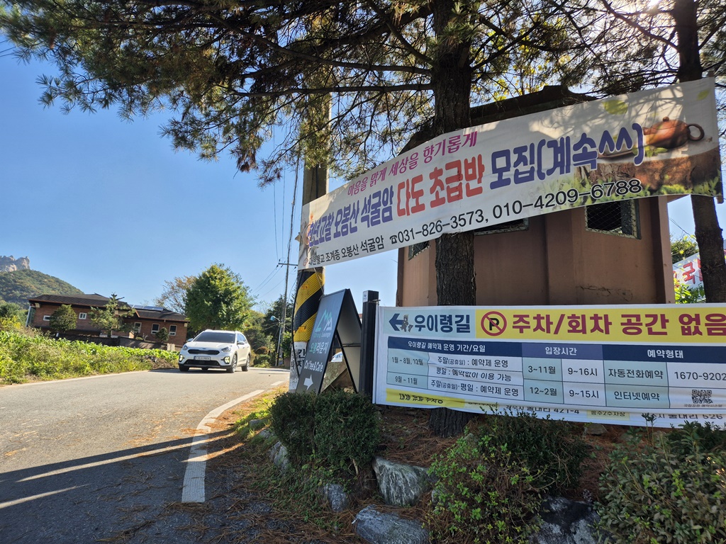 우이령은 하루 1,000명으로 사전예약을 해야 한다. 주말에는 인터넷예약이 필수이고 만65세 이상은 전화예약도 가능하다. 평일에는 예약없이도 가능하지만 주말에는 예약하지 않으면 입장이 불가하다.