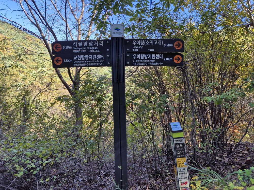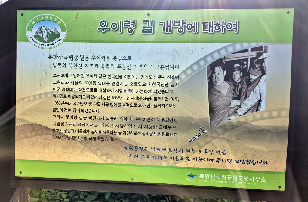 코 스 : 송추오봉, 석굴암정류장- 교현탐방안내소- 석굴암- 우이령- 우이탐방지원센터- 둘레길소나무길- 솔밭공원역