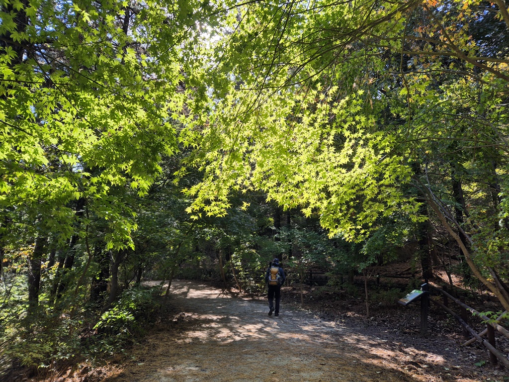 단풍나무길인데 단풍이 아직도 초록초록 하다. 단풍들려면 멀었다.