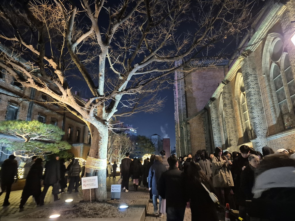 자정미사는 12시 정각에 시작되는데 미사에 참여하려는 줄은 벌써 길게 늘어 섰다. 대단한 열정이다.