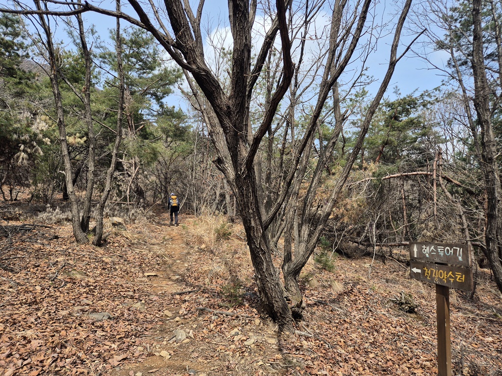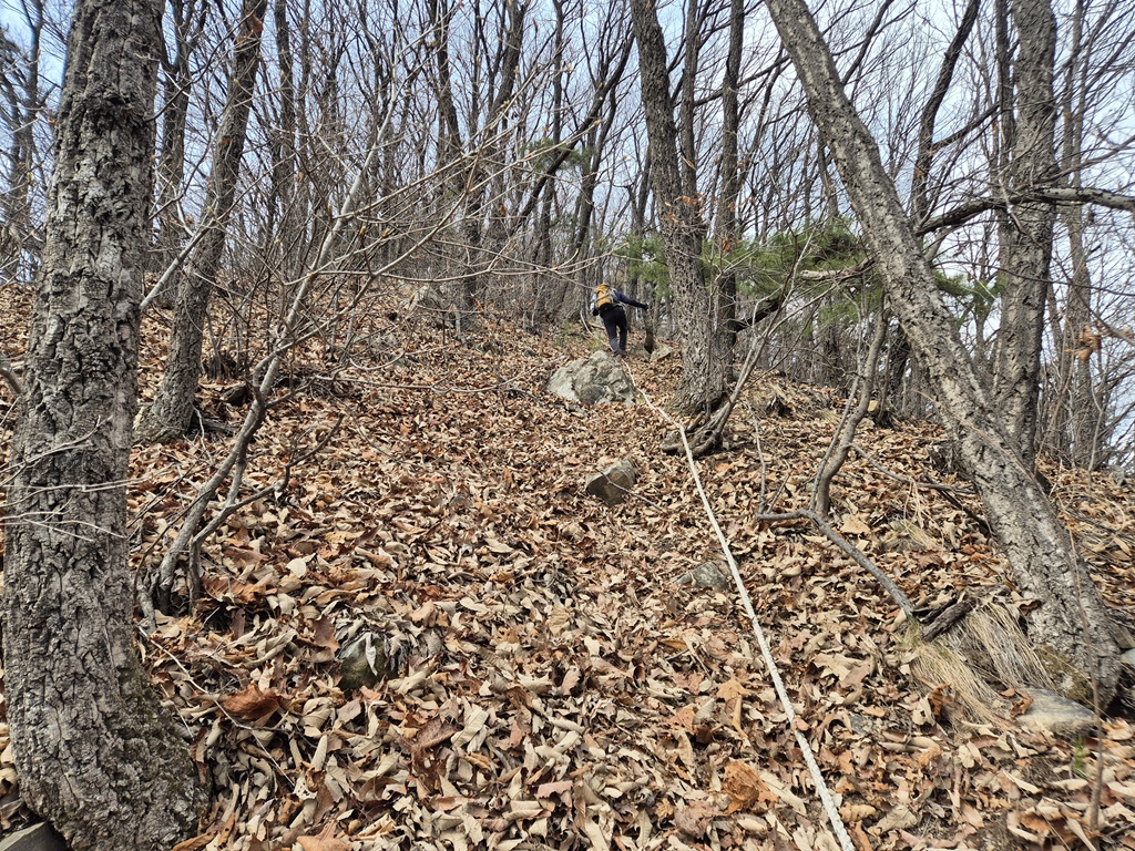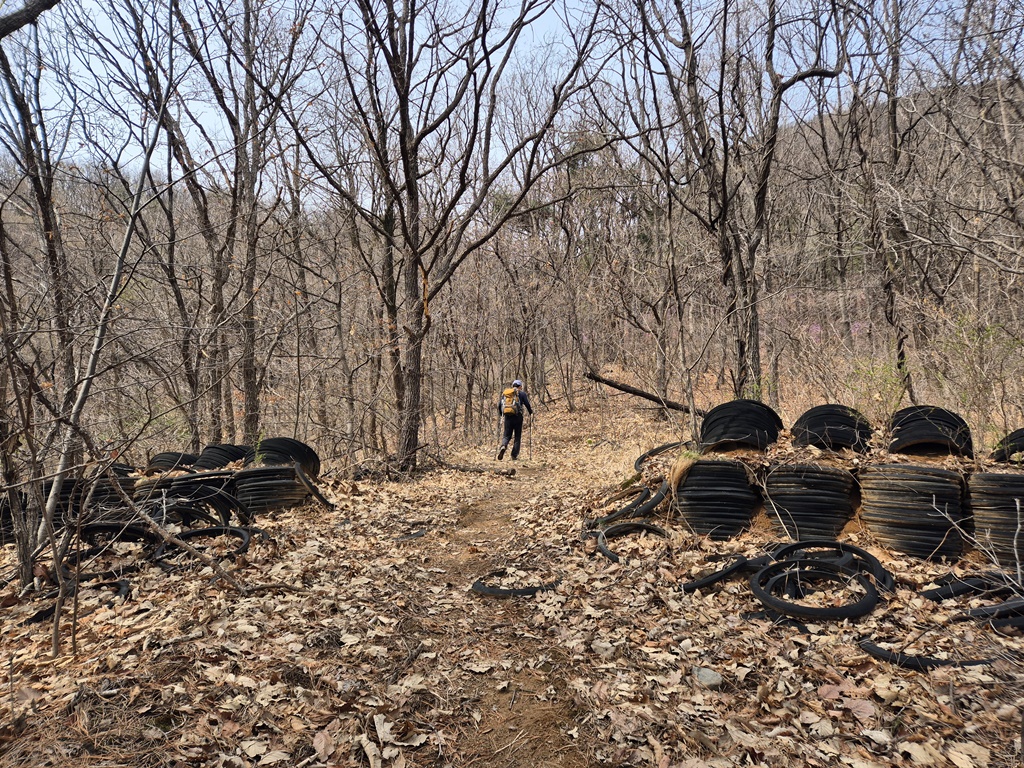 노란 차단기가 있는 이곳에서 좌측으로 등산로가 열려 있는데 사람이 다닌 흔적이 거의 없다. 이 코스를 이용하지 않는듯..