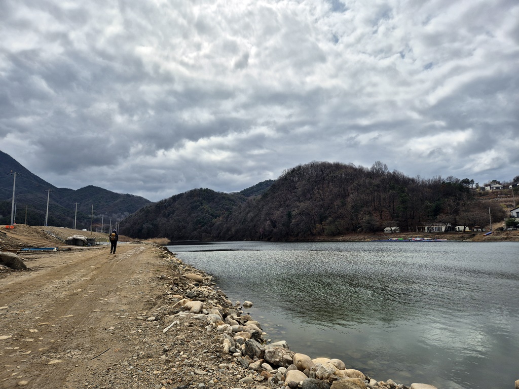 좌측으로는 제방공사를 하는 중이다.