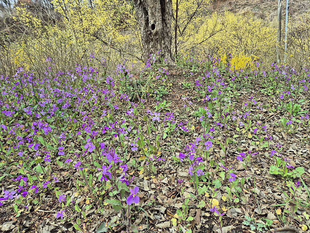 오히려 기대하지 않았던 진달래가 활짝 피어 마음이 푸근했다. 봄이 빠르게 진행 되고 있다.