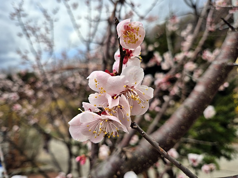 예쁘니 무시하고 다가가 본다. 홍매화다.