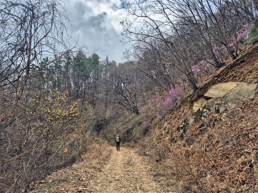 생강나무, 진달래가 피어있는 한적한 임도길 편하고 좋다.