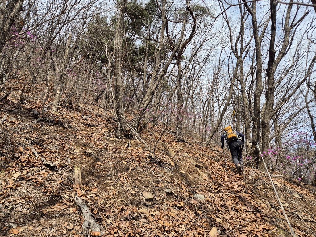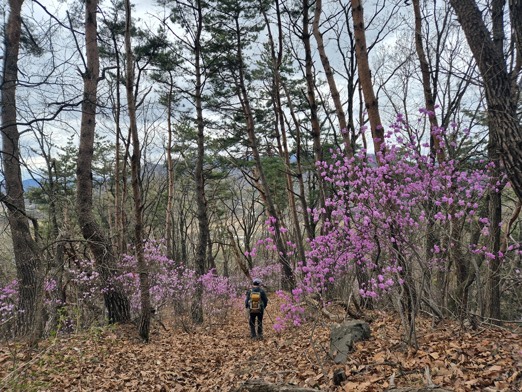 진달래가 앞을 가로 막고 길이 안보인다. 또 막산인겨? 뚫고 지나 간다.