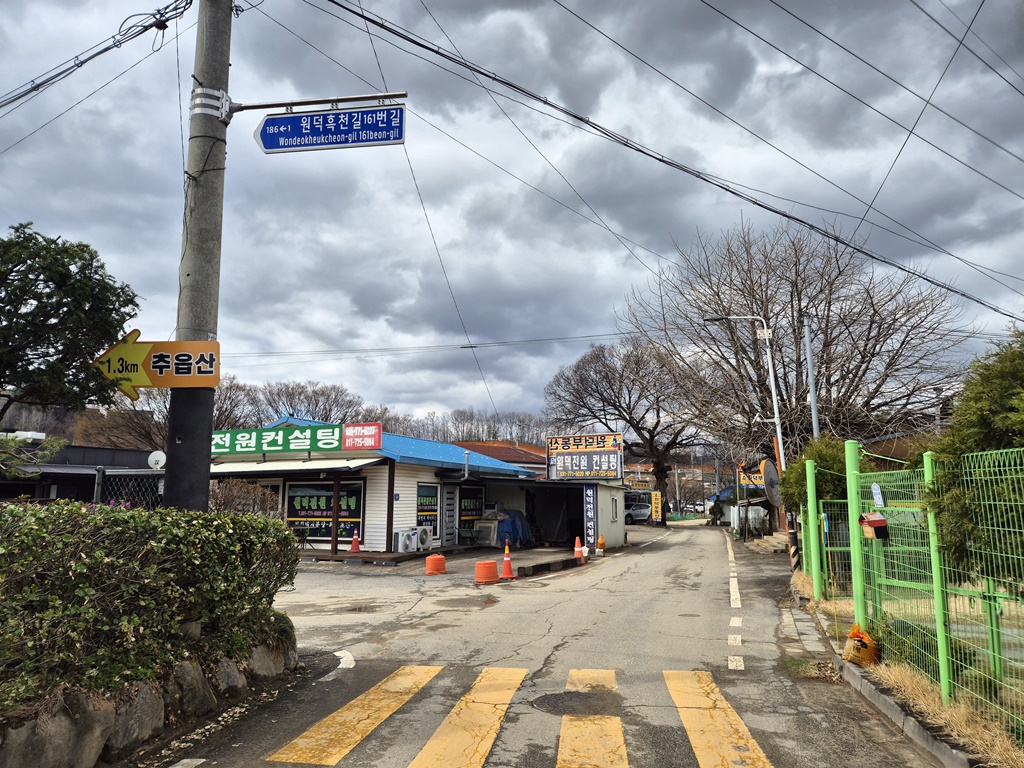 노선버스도 찾을 수 없고 원덕역까지 걷는다.